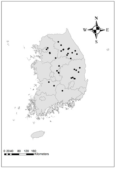 12] investigated the low-flows in South Korea to select an appropriate statistical distribution and found that the Gamma distribution was the most feasible for the analysis of the low-flows. Thus, we used the Gamma distribution to estimate the two-year and five-year quantiles. Additionally, to compare the results based on different statistical distributions, we investigated several distributions, including the generalized extreme value (GEV), two-parameter lognormal (LN2), and Weibull (W2) distributions, which are commonly applied for hydrological analysis [