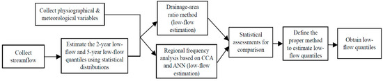 Figure 3, a simple diagram shows the processes that were used to estimate hydrological variables such as low-flow quantiles using the CCA and ANN models.