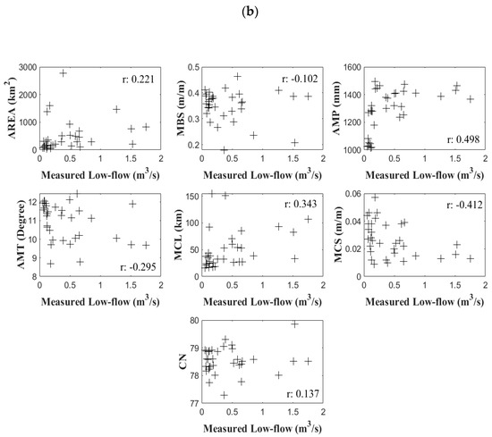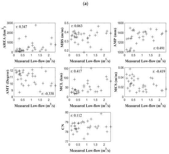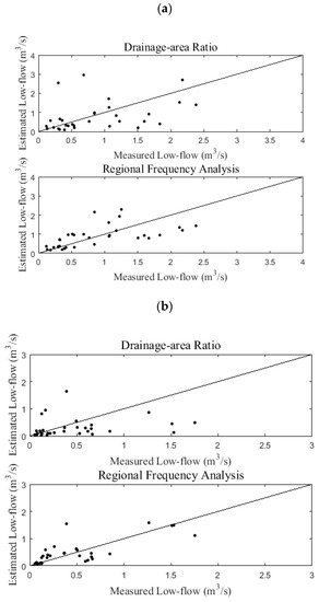 For the hydrological variables that are related to low-flows in the present work, the specific quantiles, such as the two-year and five-year quantiles, are calculated based on the flow records from all the gauged sites in the study area. Cho et al. [