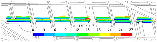 Vertical layout of buildings of the study street, with indication of the building height.
