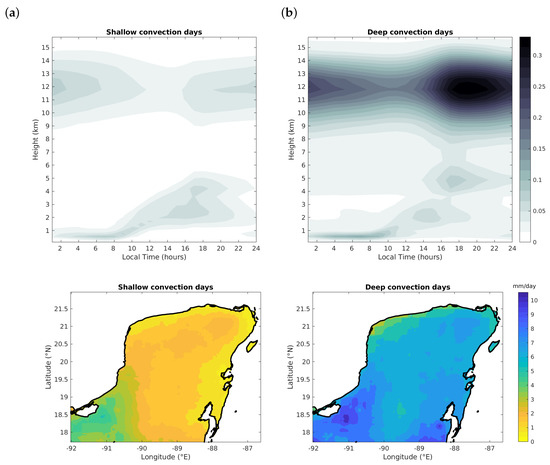 The interest in this region is mainly due to two reasons: (i) Despite the homogeneity of the land surface, the proximity of two important basins (the Caribbean Sea and the Gulf of Mexico) and the different wind regimes add complexity to convection over the peninsula, and (ii) during summertime—under no significant synoptic influence—two regimes of convection coexist: a shallow cumulus regime, mostly with no precipitation associated; and a late afternoon deep convection regime, with large amounts of precipitation associated and a short period of shallow convection preceding it. During the latter, a thermal trough develops over the peninsula, typically oriented in a north–south direction, and shifts westward. However, on some days convection remains shallow, which leads to the question: What are the conditions that prevent the transition to deep convection clouds? Or conversely, what are the factors that favor the development of deep convection in this region?