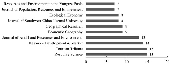 Most of these papers were published in academic journals in the fields of tourism science, resource science, and geography, as shown in Figure 1. The papers related to tourism science mainly discuss the connection between climate and the tourism landscape, tourists’ behavior and emotions, and the tourism industry. Literature related to resource science discusses the characteristics, development, and evolution of tourism climate resources. Articles related to the geographical aspect analyze the comfort and suitability of the regional tourism climate.