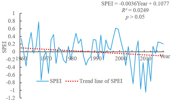 Time variations in the Standardized Precipitation Evapotranspiration Index (SPEI) from 1960 to 2018 in Southwest China.