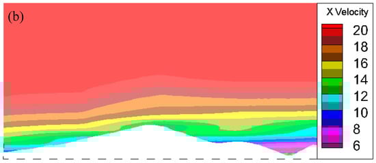 Figure 5 illustrates the Cressman interpolation coupling method. Figure 5a shows a diagram of imposing the WRF wind data on the CFD boundary using Cressman interpolation. Figure 5b depicts the wind velocity on a CFD boundary using Cressman interpolation. From the figure, it can be seen that the distribution of the wind velocity on the boundary is more realistic, and the Cressman interpolation may be a more suitable method to couple the WRF and CFD models over complex terrain.