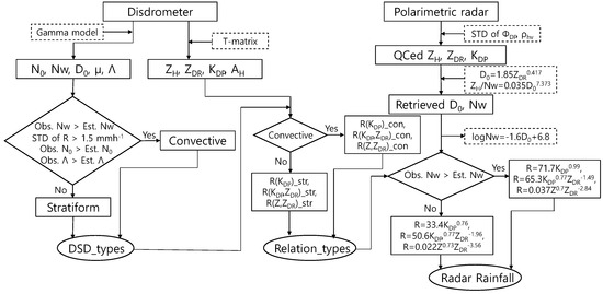 In order to categorize the rainfall types using DSDs, the logN0–R, logNw–D0, and Λ–R relations suggested by You et al. [19] are used: