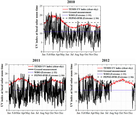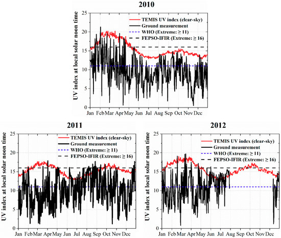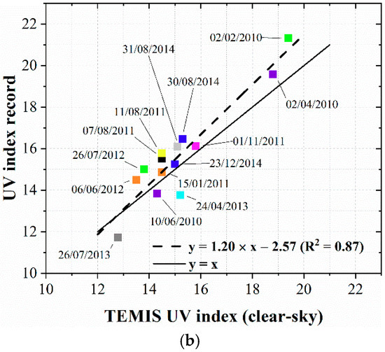 2.2. UV Index Records Versus TEMIS Dataset