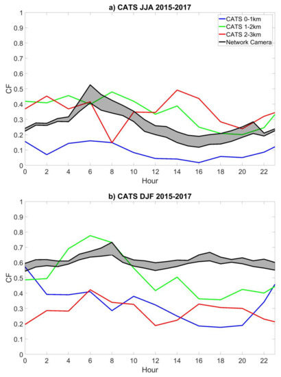 Figure 6 shows the camera COF averaged over the CATS measurement periods (2015–2017), compared to the CF obtained from CATS.