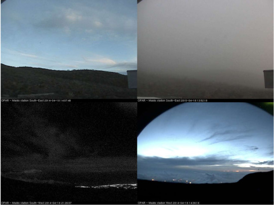 Another future plan could be to adapt Babari’s method [34] to calculate atmospheric visibility coefficients from the altitude site cameras in order to classify the cloud occurrence related to the cameras’ opacity.