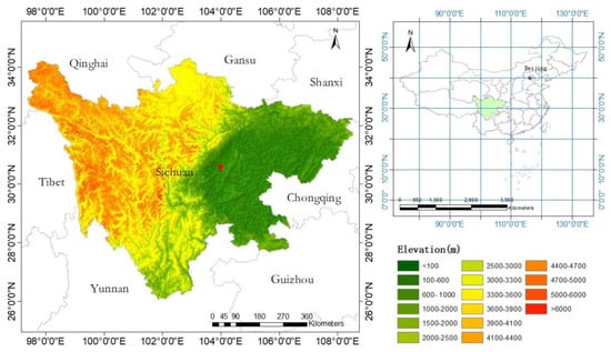 Topographic map of Sichuan province and location of the Sun-sky radiometer Observation NETwork (SONET) Chengdu site (marked with red dot). Data source is ASTER GDEM (Advanced Spaceborne Thermal Emission and Reflection Radiometer Global Digital Elevation Model).