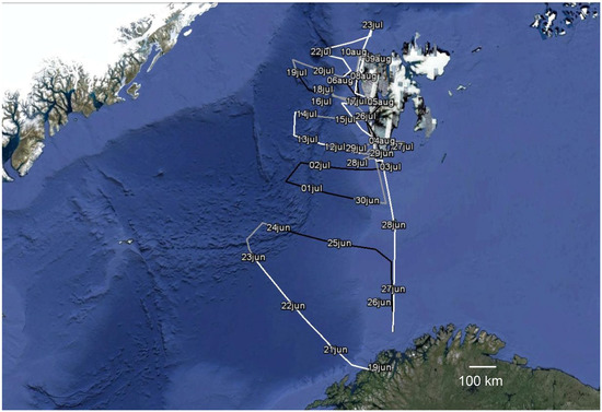 Oceania has three sailing masts that enable the ship to reduce the engine use and thus any impact on aerosol sampling and chemistry determination (Figure 1). The campaigns started in Tromsø (Norway) and finished in the Svalbard Islands (Norway), performing a two-months long cruise during each summer along the Arctic Ocean; longitudinal and latitudinal transects encompassed the Norwegian and Greenland Seas (basically, the same route was followed during both the two campaigns; Figure 2).