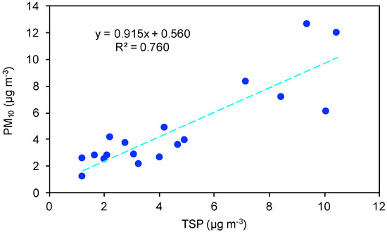 Linear correlation between PM10 and TSP during AREX2011 (n = 19).