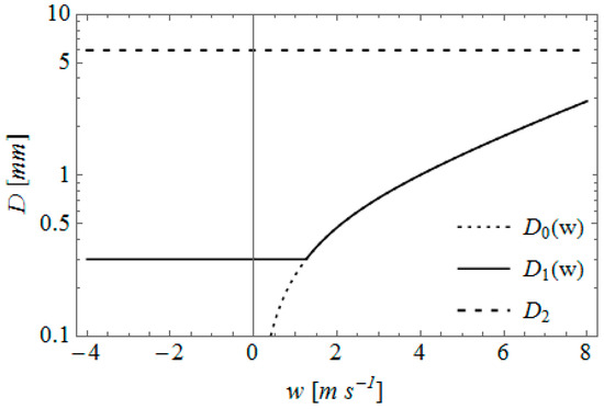 Equation (18) is an oversimplification in more than one ways, but it provides a starting point for calculating the effect of vertical air motion on the surface DSD. The most glaring problem with Equation (18) as this is formulated, in addition to the problem of requiring ideal non-interacting drops, is that the right-hand side of this equation turns negative when is positive (updraft) for some drop sizes below a value of . This lower limit of can be found as the solution to = . We can use any approximation of , including a power law, to find a and demonstrate the dependence of the coefficients A and b (based on the Z-R relationship, as explained below) on .