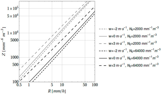 Z-R curves generated by FCM-DSD model with = 8000 (mm−1 m−3), = 1, and = 0.