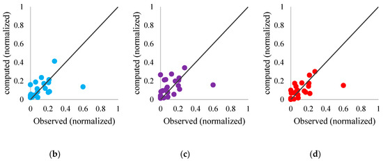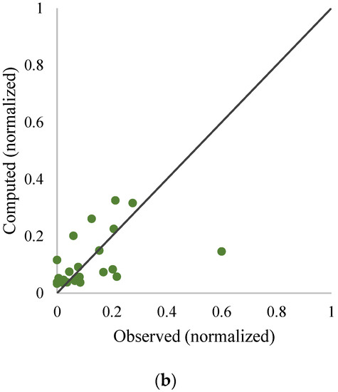 where n is the data number, Pobsi is the observed data, and Pcomi is the predicted (computed) data. DC ranges from −∞ to 1 with a perfect score of 1 and RMSE ranges from 0 to +∞ with the perfect value of 0. Legates and McCabe [47] showed that any hydro-environmental method may be adequately evaluated by DC and RMSE criteria.