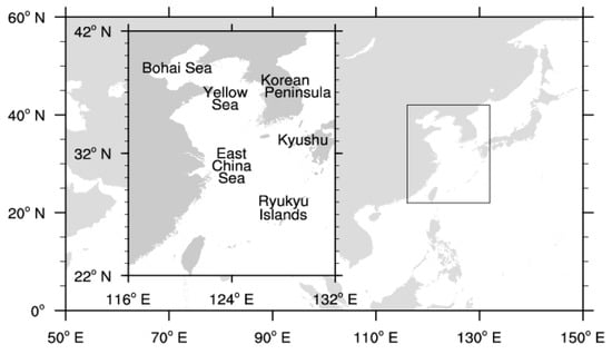 The study region including the Bohai Sea, the Yellow Sea, and the East China Sea (ECS) is bounded by China, the Ryukyu (Nansei) Islands, Kyushu, and the Korean Peninsula (Figure 1). The study region also covered a vicinity area in order to show a better perspective for the SST variability, such as the SST variability in the ECS-Kuroshio. Thus, we approximated the study region in a range of 116–132° E and 22–42° N.