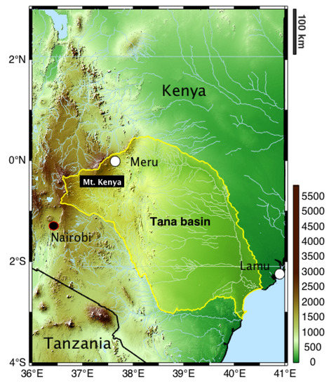 In this study, observational P and T data of the Tana River Basin (TRB) in Kenya were used. Due to the different characteristics of P and T within this region and due to the low number of missing values (<2%), we selected two different stations, namely, MERU and LAMU (Figure 1) to demonstrate our approach.