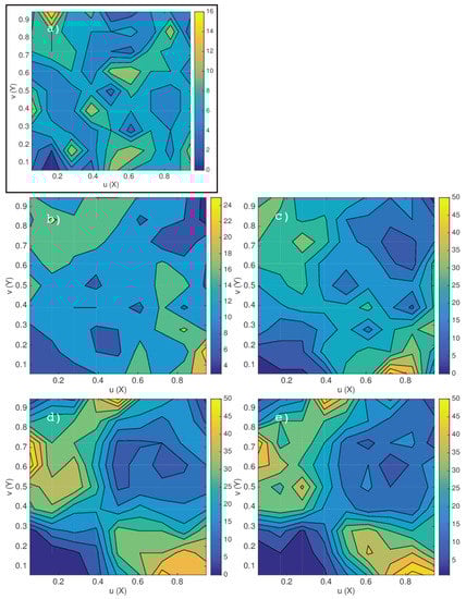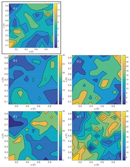 with , and denoting the indicator function and n the sample size. is a discontinuous approximation of , to which it converges uniformly. Since it is completely nonparametric, it can be considered to be the most objective approximation of underlying true copula (e.g., Reference [37]), which makes it a suitable candidate for GoF test statistics. On the other hand, densities are estimated at discrete increments (lattice) to be defined between those values in order to circumvent the problem of nonuniqueness [36]. Thus, the empirical copula is expected to depend on the lattice.