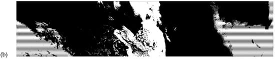Equation (3) [11] states that the vast majority of energy arriving at the satellite sensor, under cloud-free conditions, is dependent primarily upon only three primary components: the blackbody emission from the Earth’s surface, the emissivity of the surface, and the atmospheric transmission from the surface to the sensor. (A similar analysis would lead to another equation that represents the radiation arriving from the cloud top to the sensor.) The emissivity of a cloud may differ from its cloud-free background in some bi-spectral band combinations, thus improving the cloud-ground contrast [13,14]. However, in individual spectral bands, small temperature differences often occur between the cloud top and the background surface causing lower-contrast frequently between cloudy and cloud-free pixels in nighttime imagery. The lower the contrast, the more difficult it becomes to create a highly accurate MGCNC product from such imagery. In fact, MGCNC products can be very difficult to create under polar-nighttime conditions where cloud and surface temperatures may be extremely low and temperature differences are small. Therefore, again for simplicity, focus turns toward creating MGCNC products under daytime illumination conditions where contrasts can be larger between cloud pixels and cloud-free pixels for many background conditions.