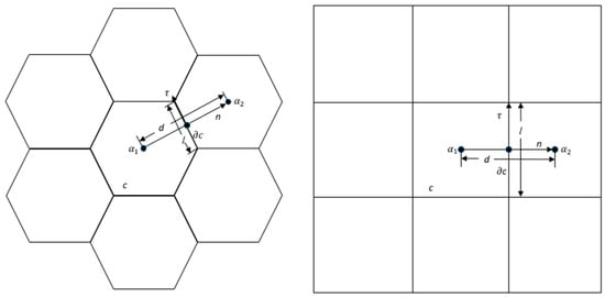 Note that the subindex integers of 1,2,…,6 in Figure 2 serve a symbolic purpose only. For each edge, the indices are different. For a rectangular grid, the Voronoi Z-grid model approximates the line integrals of the operators of Equations (6)–(8) as follows: