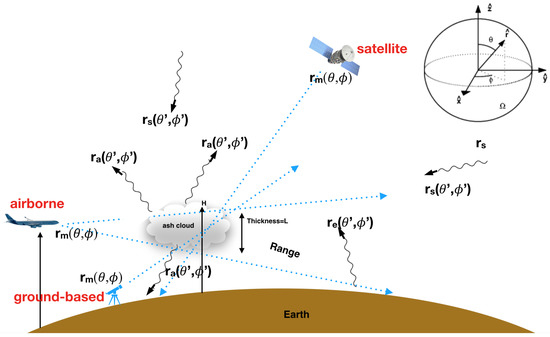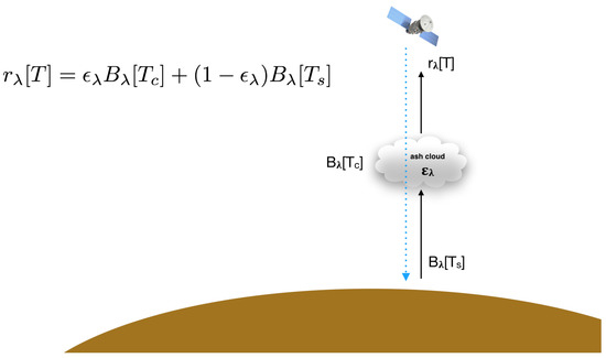 Several radiative transfer (RT) models have been proposed to solve the IR absorption/scattering processes for a volcanic ash cloud [22,28,29,31,33,34,35,36,37,38,39]. The models essentially follow the theory outlined above, but the methods of solution differ in detail.