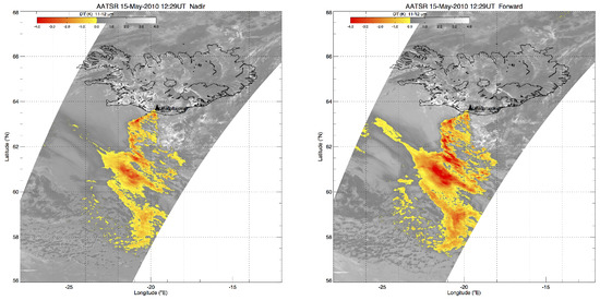 - Prata, A.; Prata, A. Eyjafjallajökull volcanic ash concentrations determined using Spin Enhanced Visible and Infrared Imager measurements. J. Geophys. Res. 2012, 117. [Google Scholar] [CrossRef]