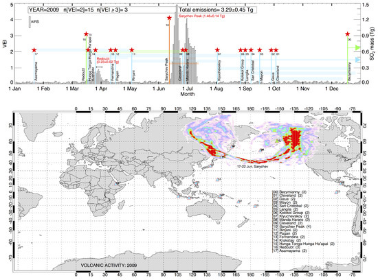 - Wu, X.; Griessbach, S.; Hoffmann, L. Equatorward dispersion of a high-latitude volcanic plume and its relation to the Asian summer monsoon: A case study of the Sarychev eruption in 2009. Atmos. Chem. Phys. 2017, 17, 13439. [Google Scholar] [CrossRef]