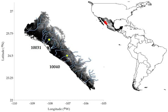Gaging station 10040 is located in the San Lorenzo River, at the coordinates 24°29′05″ N and 106°57′10″ W, and measures flows over a catchment area of 8919 km2. It is placed 24 km upstream of the federal highway #15 bridge on the Mazatlan–Culiacan route, near Santa Cruz de Alaya, in the municipality of Cosala. Gaging station 10031 is located over the Mocorito River, at the coordinates 25°28′10″ N and 108°05′10″ W, and measures flows over a catchment area of 1645 km2. It is placed at the crossroads between the river and the South Pacific railroad, on the northern side of the city of Guamuchil. The gaging stations are in the state of Sonora (Figure 1), and their information was consulted in the National Data Bank of Surface Waters (BANDAS acronym in Spanish) through the official website of the National Water Commission (CONAGUA acronym in Spanish). In Mexico, hydrometric measurements are performed with Mexican Standards (NMX) produced by CONAGUA. These Mexican standards are based on ASTM D3858-95 and ASTM D5130-95. The stability of the cross-sectional area is verified twice a year by CONAGUA. The homogeneity of the database is reviewed annually by the Mexican Institute of Water Technology (IMTA).