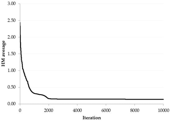 The mean of the 40 harmonic vectors with which harmonic memory was initiated corresponds to the same number of stochastic proposed initial solutions. The new model iterations replace the most unfavorable solution.