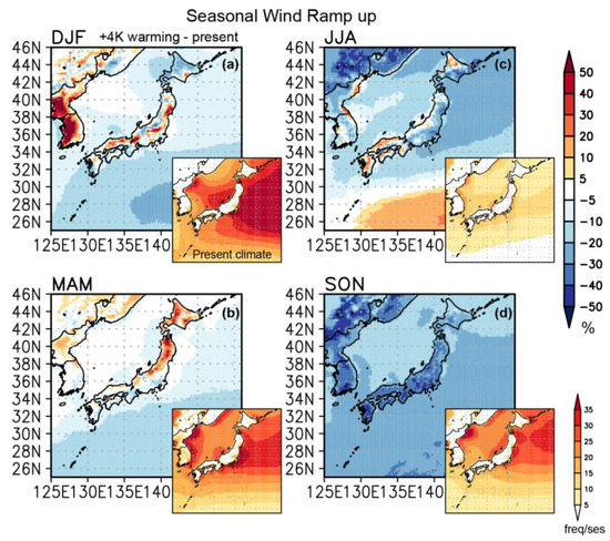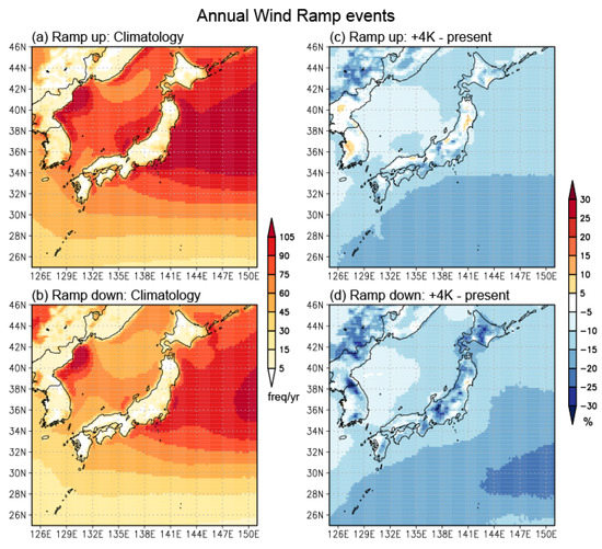 Chicago/Turabian StyleOhba, Masamichi. 2019. "The Impact of Global Warming on Wind Energy Resources and Ramp Events in Japan" Atmosphere 10, no. 5: 265. https://doi.org/10.3390/atmos10050265