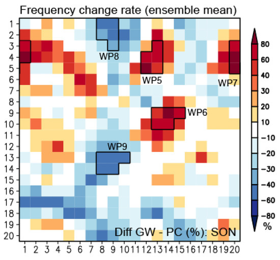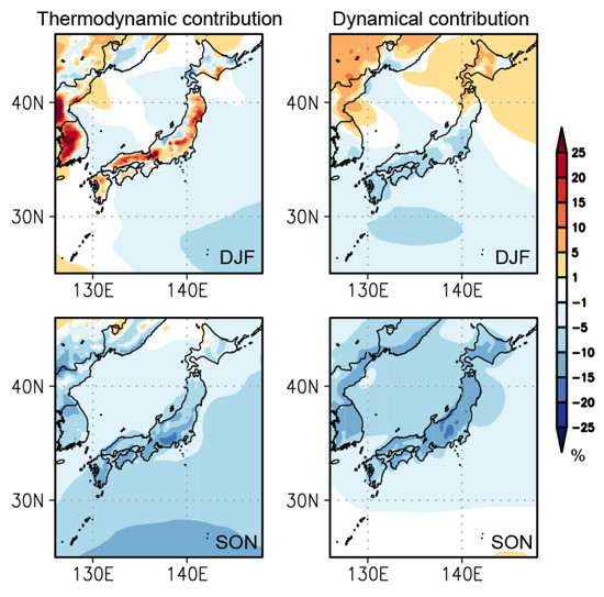 - Ohba, M.; Sugimoto, S. Differences in climate change impacts between weather patterns: Possible effects on spatial heterogeneous changes of future extreme rainfall. Clim. Dyn. 2018, 52, 4177–4191. [Google Scholar] [CrossRef]