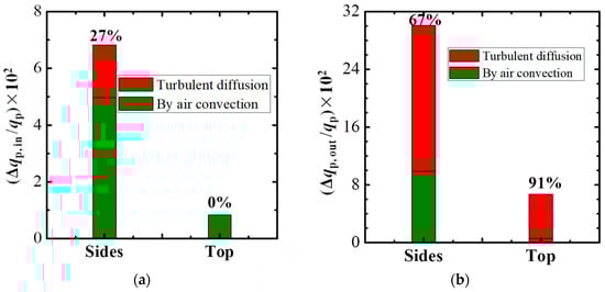 Contributions of air convection and turbulent diffusion to pollutant flow rates with ground heating (TSC): (a) contributions by air convection; (b) contributions by turbulent diffusion.