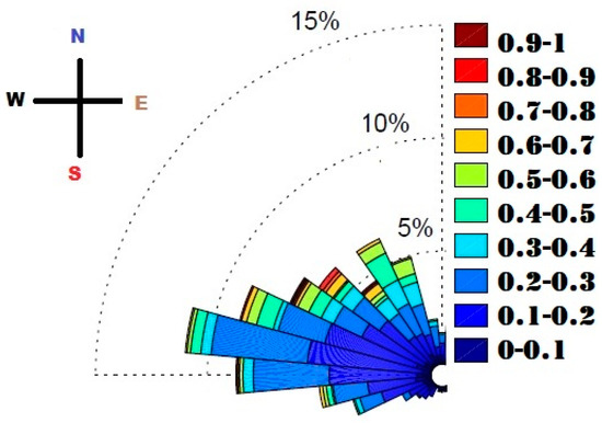 The wind rose presentation of wind direction and wind speed (m s−1) during the experiment period of Sept–Nov 2018. The prevailing wind direction of West-North-West is clearly observed.