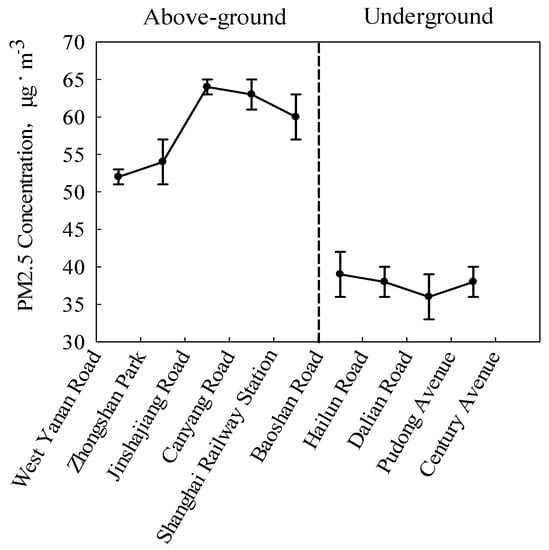 - Kam, W.; Cheung, K.; Daher, N.; Sioutas, C. Particulate matter (PM) concentrations in underground and ground-level rail systems of the Los Angeles metro. Atmos. Environ. 2011, 45, 1506–1516. [Google Scholar] [CrossRef]