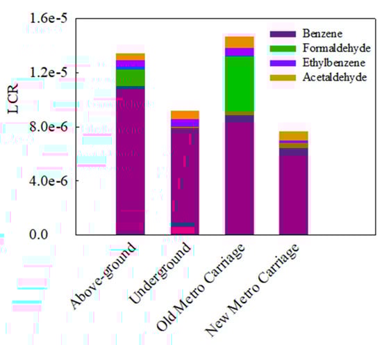 - Gong, Y.; Wei, Y.; Cheng, J.; Jiang, T.; Chen, L.; Xu, B. Health risk assessment and personal exposure to Volatile Organic Compounds (VOCs) in metro carriages—A case study in Shanghai, China. Sci. Total Environ. 2017, 574, 1432–1438. [Google Scholar] [CrossRef]