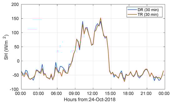 Sensible heat flux of a typical clear-sky day (24 October 2018) after DR or TR. This data was classified as high A.