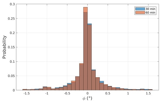 Distribution of the third rotation angle of the 30 and 60 min windows.