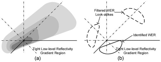 Although updraft-related signatures, such as WERs and BWERs, are helpful to identify hail-producing thunderstorms, they are rarely used in operational forecasting systems due to the lack of a reliable identification algorithm. Most existing identification algorithms aim at BWERs, such as the work of [22,23,24,25]. As part of their storm-labeling system to identify convective updrafts, the authors in [9] proposed a WER identification algorithm. This algorithm searches for WERs by finding if there are at least six of the eight horizontally-adjacent grid volumes with horizontal reflectivity gradients greater than or equal to 8 and column maximum reflectivity greater than or equal to 40 . Obviously, it only considers the interface of the WER and the overhang echo, while ignoring whether there are tilted wall echoes that may lead to false alarms.
