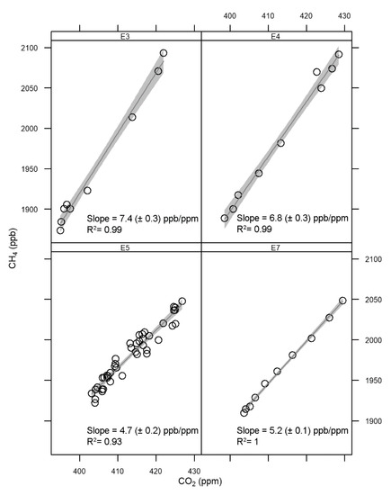 - Tohjima, Y.; Kubo, M.; Minejima, C.; Mukai, H.; Tanimoto, H.; Ganshin, A.; Maksyutov, S.; Katsumata, K.; Machida, T.; Kita, K. Temporal changes in the emissions of CH4 and CO from China estimated from CH4/CO2 and CO/CO2 correlations observed at Hateruma Island. Atmos. Chem. Phys. 2014, 14, 1663–1677. [Google Scholar] [CrossRef]