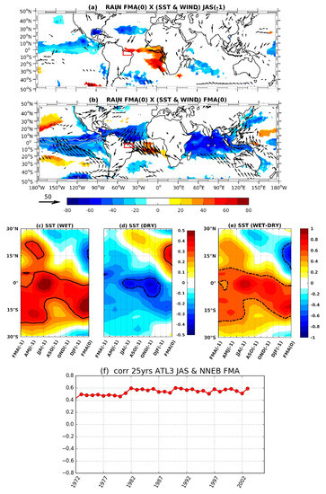 Accordingly, we now focus on the analysis of the Northern NEB case for all years of the period 1980–2015 that presents a highly positive relationship between JAS(−1) ATL3/SSTA and the FMA(0) rainfall anomalies in Northern NEB.