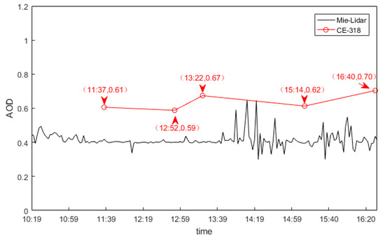 | Date | CE-318 | Mie-Lidar | MODIS | CALIPSO | Absolute Difference | Relative Difference | ||