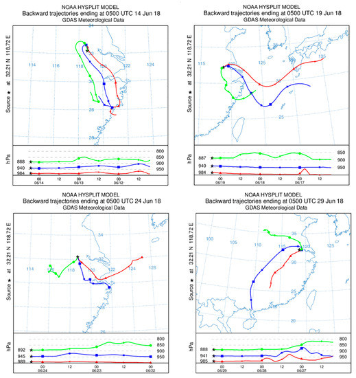 3.3. Analysis of Sounding Data and HYSPLIT Backward Trajectory Data