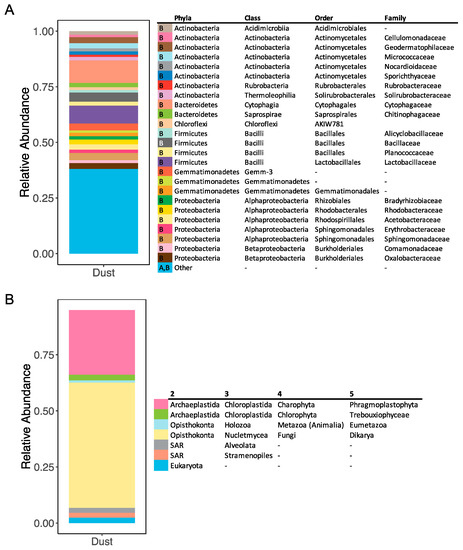3.3. Dust-Associated Prokaryotes and Eukaryotes