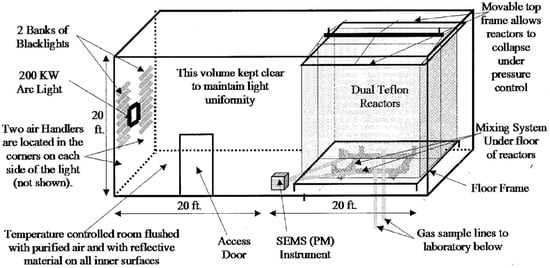 Example of Indoor Smog Chamber Configuration for the study of gas and aerosol photochemistry. CE-CERT, University of California Riverside System and the US Environmental Protection Agency (Reprinted from Carter et al., [] with permission from Elsevier).