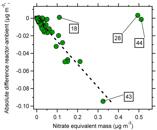 - Farmer, D.K.; Matsunaga, A.; Docherty, K.S.; Surratt, J.D.; Seinfeld, J.H.; Ziemann, P.J.; Jimenez, J.L. Response of an aerosol mass spectrometer to organonitrates and organosulfates and implications for atmospheric chemistry. Proc. Natl. Acad. Sci. USA 2010, 107, 6670–6675. [Google Scholar] [CrossRef] [PubMed]