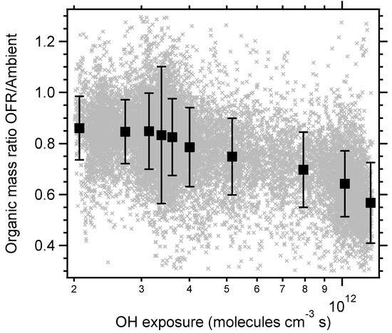 - Slowik, J.G.; Wong, J.P.S.; Abbatt, J.P.D. Real-time, controlled OH-initiated oxidation of biogenic secondary organic aerosol. Atmos. Chem. Phys. 2012, 12, 9775–9790. [Google Scholar] [CrossRef]