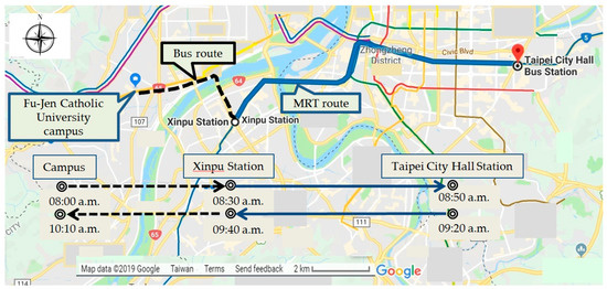 - Liu, W.T.; Ma, C.M.; Liu, I.J.; Han, B.C.; Chuang, H.C.; Chuang, K.J. Effects of commuting mode on air pollution exposure and cardiovascular health among young adults in Taipei, Taiwan. Int. J. Hyg. Environ. Health 2015, 218, 319–323. [Google Scholar] [CrossRef] [PubMed]