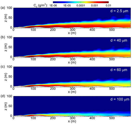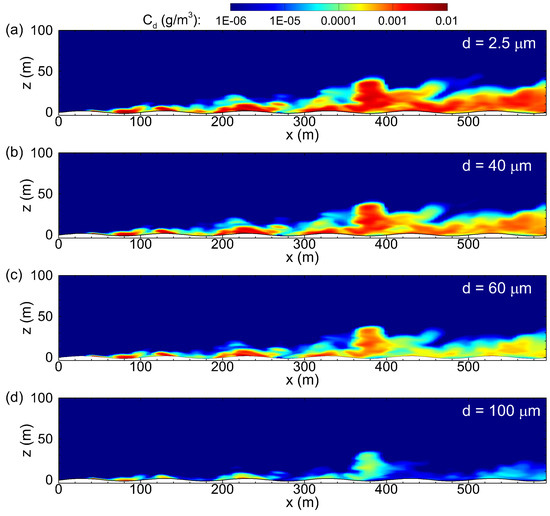 - Chamecki, M.; Meneveau, C.; Parlange, M. Large eddy simulation of pollen transport in the atmospheric boundary layer. J. Aerosol Sci. 2009, 40, 241–255. [Google Scholar] [CrossRef]