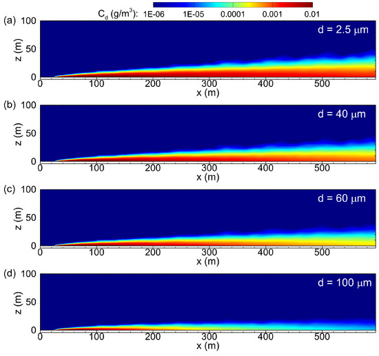 - Mestayer, P.G.; van Eijk, A.M.J.; de Leeuw, G.; Tranchant, B. Numerical simulation of the dynamics of sea spray over the waves. J. Geophys. Res. 1996, 101, 20771–20797. [Google Scholar] [CrossRef]