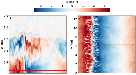 The LES model PALM [47] (revision 2663) was used in the present study. It has been widely applied to study different flow regimes in the convective and neutral boundary layers (e.g., Kanani-Sühring and Raasch [55], El Guernaoui et al. [56]). The PALM model solves the filtered, non-hydrostatic Navier–Stokes equations in the Boussinesq approximation. A 1.5-order flux-gradient subgrid closure scheme after Deardorff [57] was used, which involved the solution of an additional prognostic equation for the subgrid-scale TKE. The model equations were discretized on a Cartesian grid using finite differences. Discretization in time and space was done with a third-order Runge–Kutta time step scheme, and a fifth-order advection scheme [58]. For more details and a technical documentation, see the work of Maronga et al. [47].