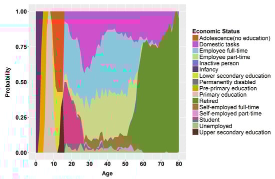 To solve this problem, a life course trajectory model developed within the frame of FP7-ENVIRONMENT research project HEALS (Health and Environment-wide Associations based on Large Population Surveys, project number: 603946) was adopted. The model was established based on longitudinal data for employment status and education level from EU-SILC data (European Union Statistics on Income and Living Conditions). With this model, it is possible to identify the trajectory patterns for all states of economic status and the transitions between the states retrospectively based on the status of a given year.